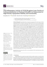 CIGB-258的抗炎活性有助于提高瘫痪斑马鱼中高密度脂蛋白的稳定性与功能性,以应对羧甲基赖氨酸诱导的急性毒性