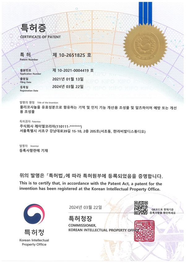 한국 특허 제 10-2651825 호