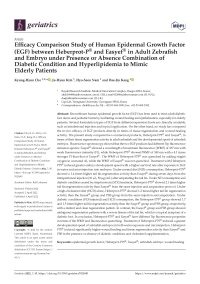Efficacy Comparison Study of Human Epidermal Growth Factor (EGF) between Heberprot-P® and Easyef® in Adult Zebrafish and Embryo under Presence or Absence Combination of Diabetic Condition and Hyperlipidemia to Mimic Elderly Patients