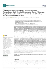 Comparison of Policosanols via Incorporation into Reconstituted High-Density Lipoproteins: Cuban Policosanol (Raydel®) Exerts the Highest Antioxidant, Anti-Glycation, and Anti-Inflammatory Activity