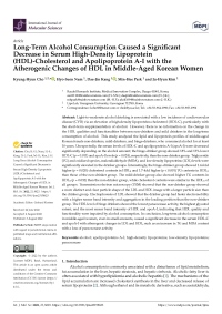 Long-Term Alcohol Consumption Caused a Significant Decrease in Serum High-Density Lipoprotein (HDL)-Cholesterol and Apolipoprotein A-I with the Atherogenic Changes of HDL in Middle-Aged Korean Women