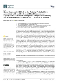 Rapid Decrease in HDL-C in the Puberty Period of Boys Associated with an Elevation of Blood Pressure and Dyslipidemia in Korean Teenagers: An Explanation of Why and When Men Have Lower HDL-C Levels Than Women