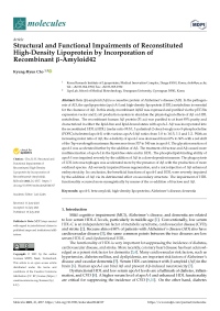 再組換えβ-アミロイド42の包含による再構成高密度リポタンパク質の構造的および機能的損傷